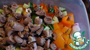 Легкий овощной салатик с куриными сердцами... Понравится за быстроту выполнения и приятный вкус
