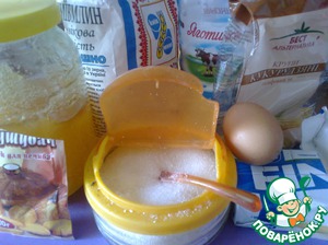 Яйца хорошо взбить, смешать с топленым маслом, молоком и медом.