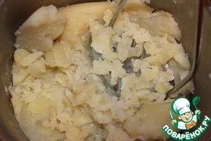 Картофель очистить и отварить в подсоленной воде в течение 20-30 минут. Затем сваренный картофель процедить и сделать из него пюре.