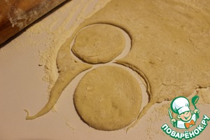 Затем тесто раскатываем и вырезаем необходимого диаметра круглые пласты, в соответствии с формой. Одни побольше, другие поменьше.