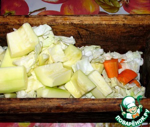 • Кабачок давно перекочевал с огорода в квартиру. Трудно чистился от твёрдой кожи. Нарезать его на дольки.