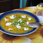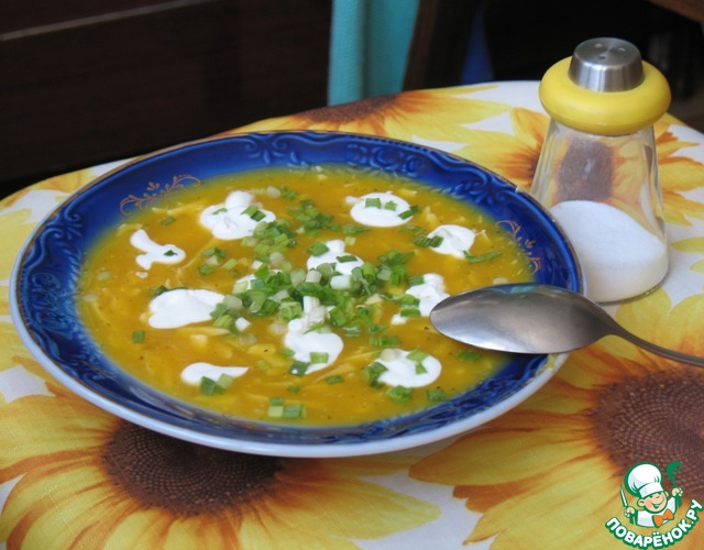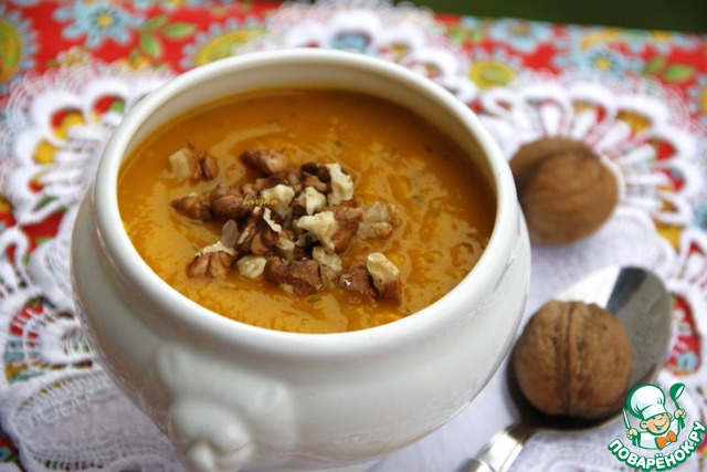Блюда из тыквы становятся все более популярными, и это замечательно. Тыква не только полезна, она еще и прекрасно растет в нашем климате, давая стабильно хороший урожай, а с ним надо что-то делать. Не выбрасывать же такое добро. Вот я предлагаю приготовить еще один вариант вкусного супа-пюре из тыквы. Добросовестно просмотрев, все 49 вариантов подобных супов уже присутствующих на сайте, нашла отличие предлагаемого мной супа от других и осмелилась выложить. Может быть именно мой вариант понравится еще кому-то, кроме меня и моей семьи. Оригинал рецепта взят из "Золотой коллекции рецептов" книги гастронома.