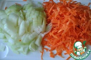 Овощи чистим, морковь натираем на тёрке, лук нарезаем кубиками.