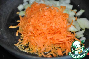 На раскалённой сковороде на растительном масле обжариваем лук и морковь около 2 минут.