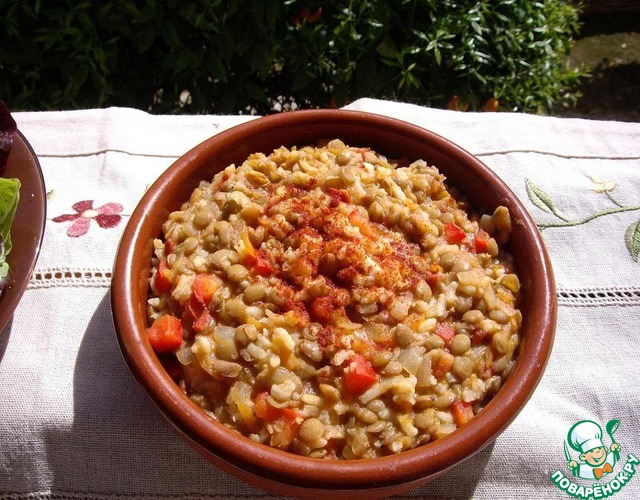 Муджадара (муджаддара, маджадра) - блюдо ближневосточной кухни, состоящее из варёного риса, варёной чечевицы, жареного лука и пряностей. В некоторых рецептах вместо риса используются другие крупы. Я решила приготовить этот рецепт с добавлением дикого риса в смеси с пропаренным белым рисом. Блюдо оказалось вкусным, пикантным и сытным. Рецепт найден в интернете. Выражаю огромную благодарность автору рецепта - Ольге.