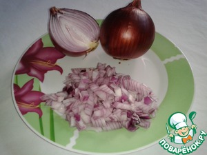 Режем мелкими кубиками лук и помещаем в кастрюлю.
