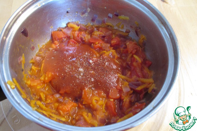 - Томаты в собственном соку (томатное пюре или 1 ч.л. томатной пасты) — 2 ст. л.