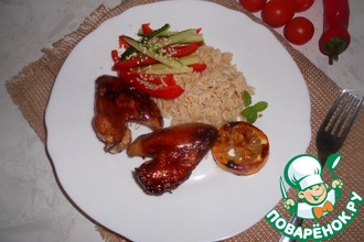 - Чеснок (1 зуб. - в рис; 1 зуб. - в соус) — 2 зуб.