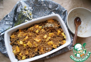 Присыплем верх формы, поставим в хорошо разогретую духовку.