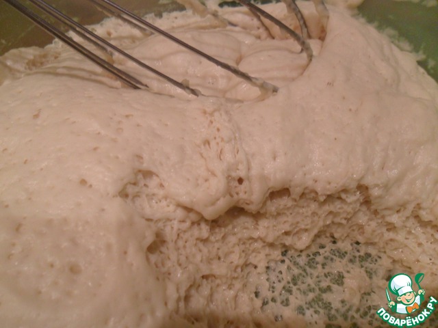 Когда опара увеличится в размерах и станет вот такой воздушной и дырявой - она готова!