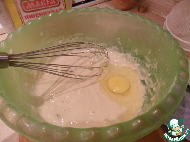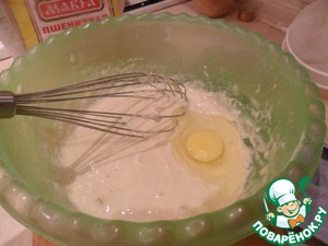 По одному вбиваем в нее 5 яиц, каждый раз перемешивая,