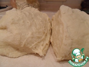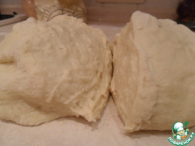Делим тесто на 2 части. То есть получается из 1 части теста - нужно приготовить один пирог.