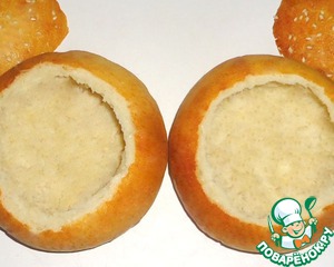 Готовые булочки остудить, срезать верхушку и вынуть мякиш.