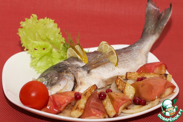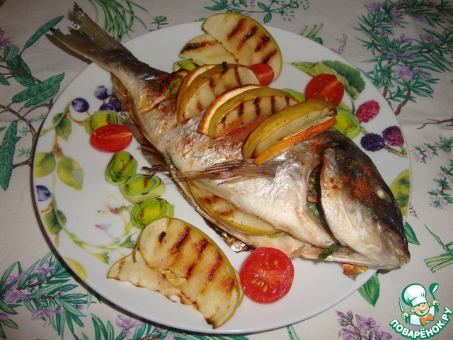 Рецепт «Рыба, запеченная с луком-пореем и яблоками»: