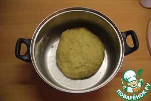 В это время вручную замешиваем тесто: мука+вода+оливковое масло.