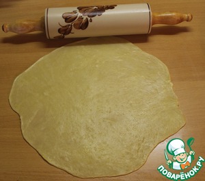 Делим на кусочки тесто и тонко раскатываем. Не бойтесь, оно прекрасно тянется и не рвётся. Режем на полоски.