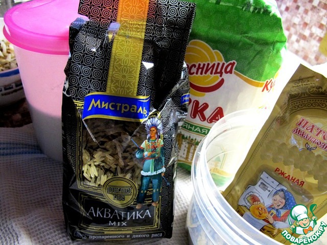 Для приготовления хлеба я использовала смесь золотистого и дикого риса Акватика Mix, поскольку она всегда есть в доме, но можно использовать и только дикий рис. Если у вас есть хлебопекарный улучшитель, то его можно добавить в количестве 2 столовых ложки.