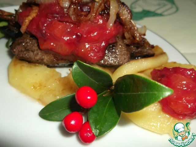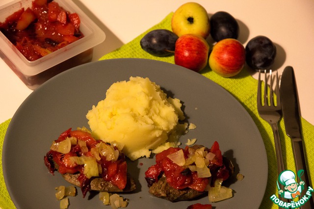 Рецепт «Телячья печень с яблочно-сливовым соусом»: