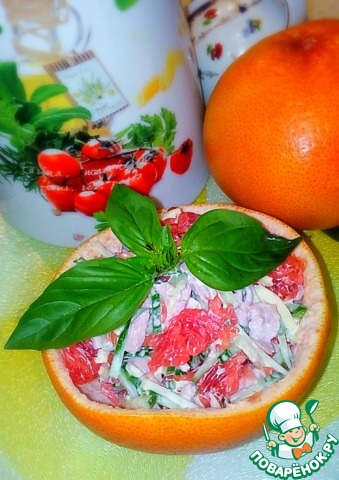 Люблю грейпфрут. Уже пробовала один салатик из него, теперь решила пофантазировать над другим. Сразу предупреждаю, что салатик на любителя, с горчинкой.