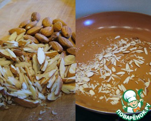 Большую сковороду разогрейте и на среднем огне обжарьте рубленый миндаль в течение 1-2 минут до золотистого цвета. Уберите со сковороды.