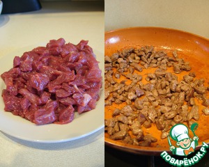 Увеличьте огонь до сильного, добавьте 2 ложки масла и обжаривайте баранину (фарш или мелко рубленую) до готовности (до золотистого цвета). Уберите мясо со сковороды.