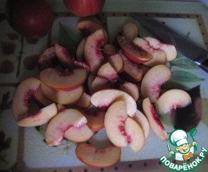 Персики отделить от косточек, нарезать тонкими сегментами.