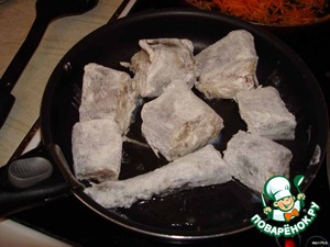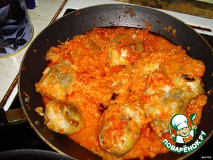 После добавляем чуть кипятка в пассировку и выкладываем рыбу.