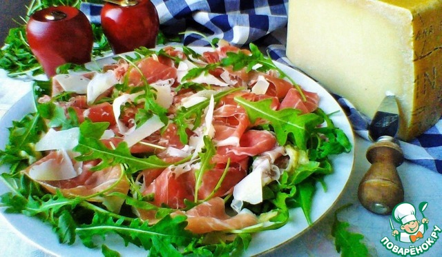 Рецепт «Руккола с пармской ветчиной и двумя видами сыра»: