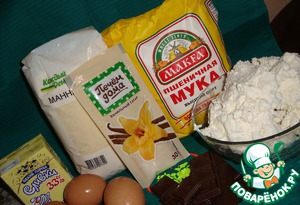 Всыпаем муку и манную крупу, хорошенечко перемешиваем.