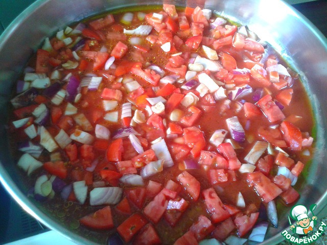 В это время я добавила в томатно- овощную смесь часть нарезанной петрушки и поставила противень на 180*С в духовку на 15 мин. Можете сделать это чуть позже.