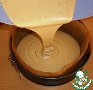 Вылить тесто в смазанную или застеленную пекарской бумагой форму (размер моей формы 22 см).