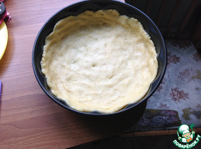 Тесто выложить в противень, предварительно смазанный маслом, сделать борта