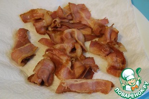 Откинуть бекон на бумажные полотенца, чтобы впитался лишний жир.