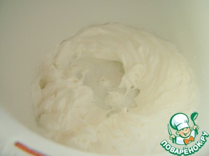 Белки с сахаром и ванильным сахаром взбиваем в крепкую пену.