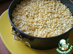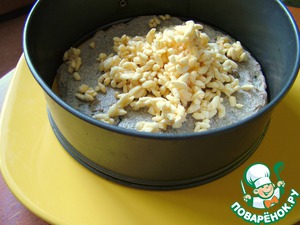 В разъемную форму (19 см) выкладываем наш корж (можно прямо горячий), сверху воздушную массу.