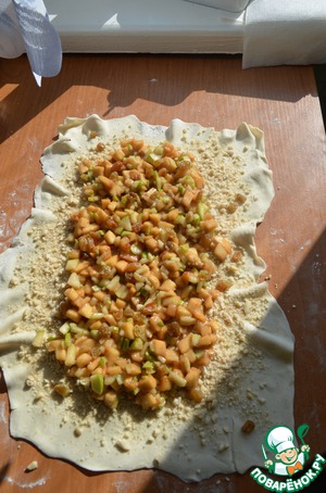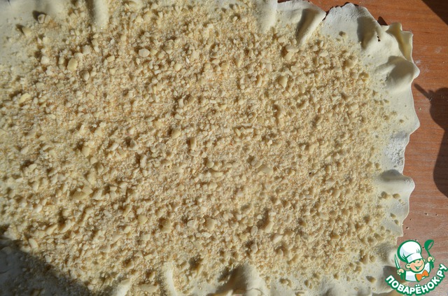 Раскатываем листы теста (на два рулета), присыпаем ореховой смесью
