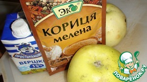 Нам понадобятся 2-3 больших яблока, корица молотая, сливки и сахар.