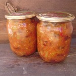 Сегодня решила повторить. Оказалось, что баклажан не хватает, добавила кабачок. Всё равно получилось очень вкусно. К счастью, в этот раз я просчиталась с банками и смогла сполна насладиться своей любовью.