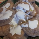 Нежный теплый адыгейский сыр в сочетании с тянущимся сулугуни, пряной зеленью и ароматным черным перецем - это просто сказка! Приятного аппетита!