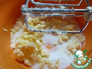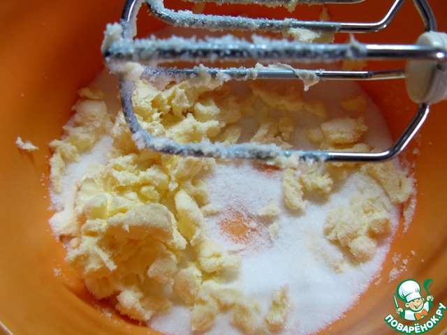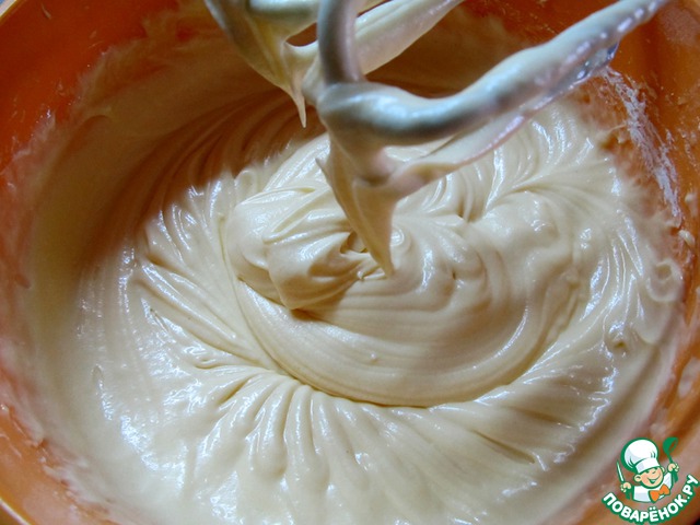Продолжая взбивать, засыпать муку, крахмал и разрыхлитель
