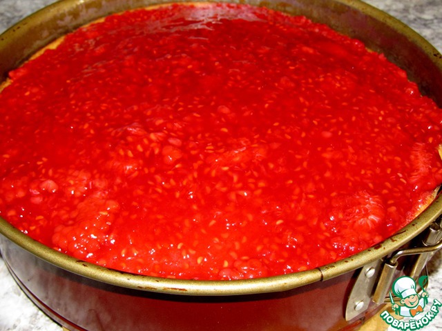 Заливаем остывшей малиновой массой и отправляем в холод, лучше на ночь