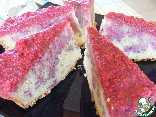 И уже к завтраку можно подать этот нежный, сладкий, с легкой кислинкой малины пирог