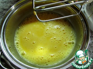 Манную крупу заливаем горячим молоком, перемешиваем, отставляем