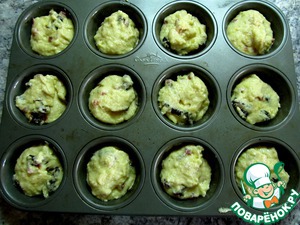 Формочки для маффинов слегка смазать маслом, заполнить их тестом (можно заполнять почти до верха, тесто мало поднимается) -