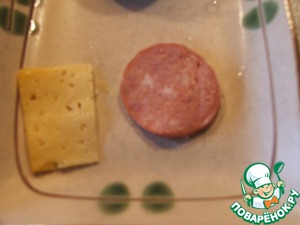 Нарезаем тонко колбасу и сыр