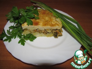 Готовые ингредиенты выкладываем в форму слоями: картофель, обжаренные овощи, картофель.