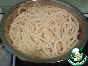 Макароны слить, промыть и дать стечь воде.