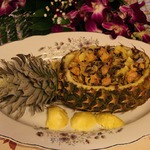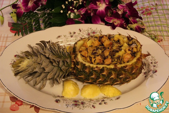 Рецепт "Праздничный ананас с рисом, курицей и орехами":