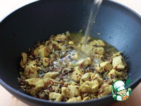 Всыпать смесь белого, красного и дикого риса, посолить, влить кипяток так, чтобы он покрывал содержимое примерно на 2 пальца. Закрыть вок крышкой и на слабом огне довести рис с курицей до готовности. Вода должна полностью впитаться, поэтому лучше не долить немного воды и затем подливать по мере надобности. |