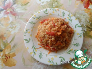 Добавить к луку булгур и обжарить все вместе 5 минут